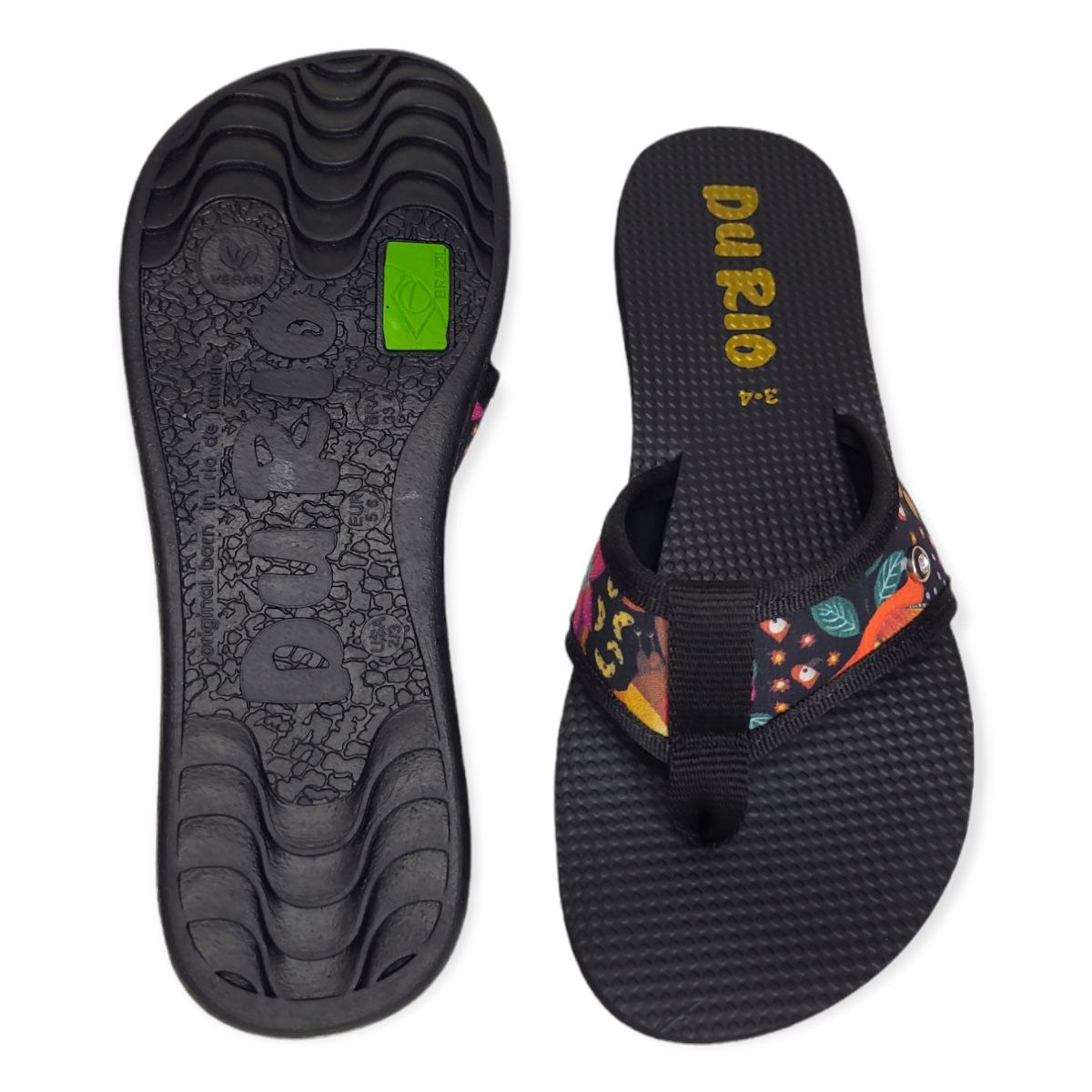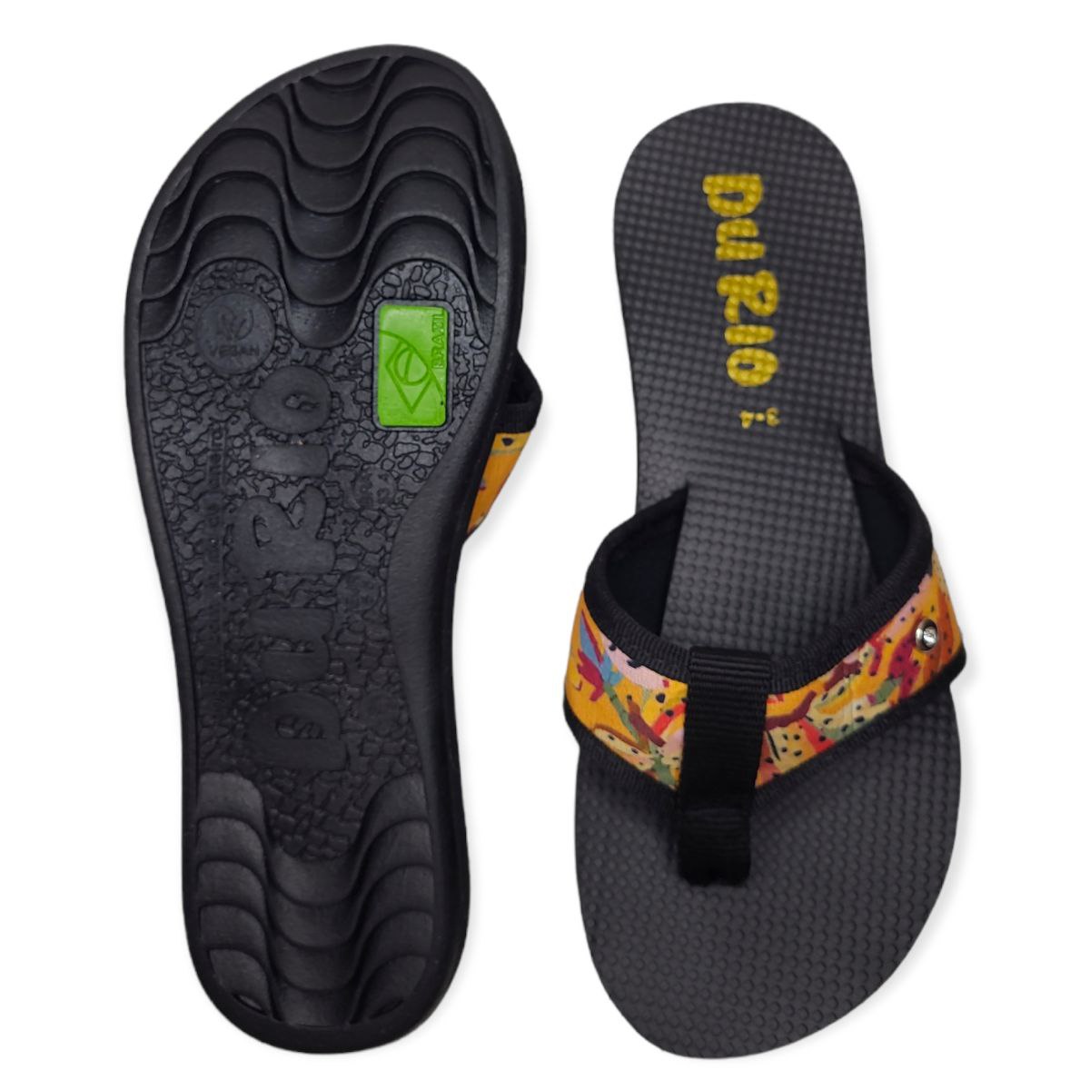O diferencial do DuRio Búzios Praia está no seu design único e cheio de personalidade. O cabedal com estamparia digital traz estampas da moda, sempre atualizadas, com qualidade e estilo para combinar perfeitamente com qualquer look. Cada par é único, com estampas vibrantes e vivas que chamam a atenção por onde passam.